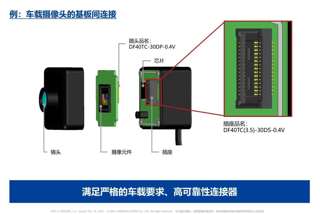 The characteristics of 1. 125℃ heat resistant and corresponding to vehicle specifications 2. 0.4mm spacing and 3.38mm depth Small board to FPC socket 3. Rich core number and high selection 4. Corresponding to PCI Express 4.0(16Gbps) transmission 5. Suitable for high heat resistant terminal design and material
